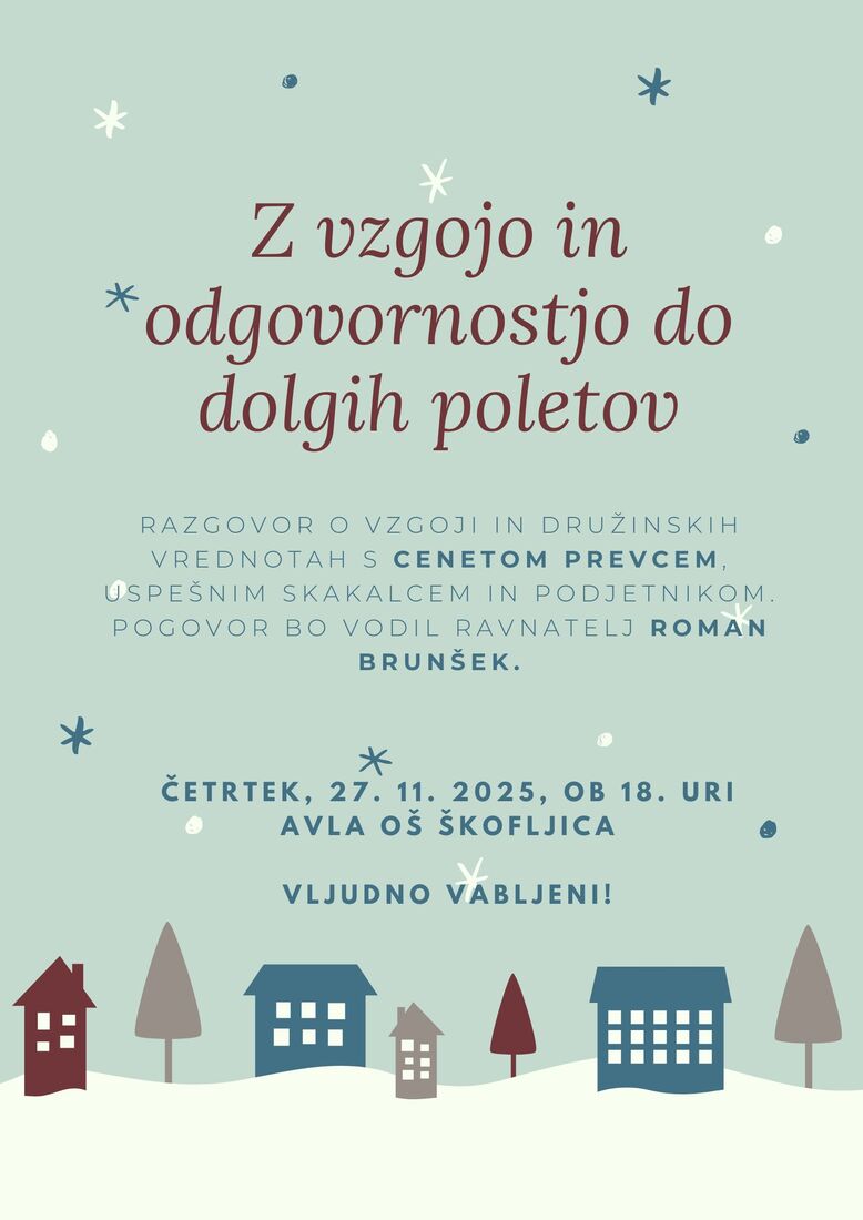 VABILO: CENE PREVC NA OŠ ŠKOFLJICA - Z VZGOJO IN ODGOVORNOSTJO DO DOLGIH POLETOV